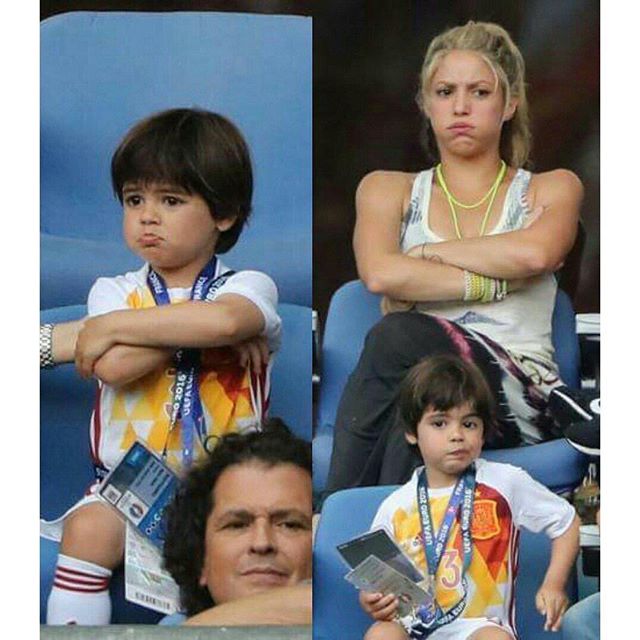 A 2016-os EB-n, a spanyol válogatott kiesésekor Shakira egy nagyon aranyos fotót töltött fel Instagram profiljára, melyen kisfiával, Milannal együtt dühöng: